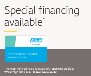 1 The KeepRite credit card is issued by Wells Fargo Bank, N.A., an Equal Housing Lender. Special terms for 5 years (60 months) apply to qualifying purchases charged with approved credit. The special terms APR will apply until all qualifying purchases are paid in full. The monthly payment for this purchase will be the amount that will pay for the purchase in full in equal payments during the promotional (special terms) period. The APR for Purchases will apply to certain fees (such as a late payment fee) or if you use the card for other transactions. For new accounts, the APR for Purchases is 28.99%. Current cardholders should refer to their credit card agreement for details, including APR and applicable fees. If you are charged interest in any billing cycle, the minimum interest charge will be $1.00. This information is subject to change; for current information, visit wellsfargo.com/plccterms (PDF). Offer expires 5/31/2026.